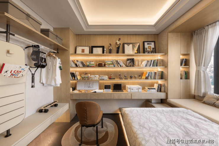 整个户型的飘窗面积总和达到了约14.3㎡!其中主卧的270°转角飘窗就有约5.7m²,通过与外立面的结合,直接做了梳妆台和储物柜,拓展了飘窗的实用性!