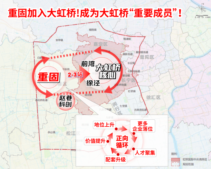随着被划入大虹桥,重固不再是孤立于核心区域之外的存在,而是真正融入到大虹桥发展中,其定位也从居住板块跃升为大虹桥发展辐射带上的重要成员,获得战略级资源倾斜,这一定位的质变成为撬动区域发展的关键支点