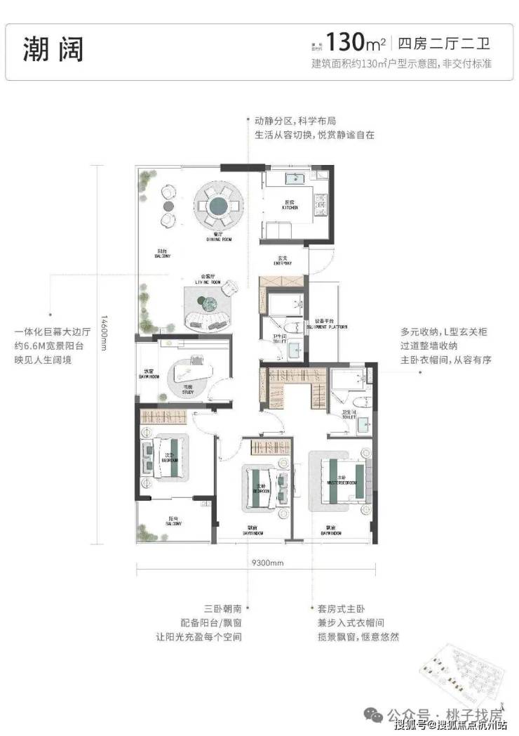 墅境洋房建筑面积约139㎡,客厅、双卧皆朝南,拥享宽屏采光视野,大四房格局满足改善高阶之享。