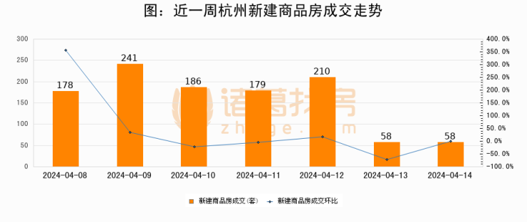 【杭州成交日报】04月14日新房成交58套、二手房272套;涨价房源91套