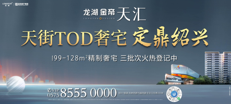 本项目推广名为“龙湖金帝·天汇”,核准地名为“天汇府”。本宣传资料为要约邀请,不构成要约内容,具体信息以书面签订的合同约定及政府最终审批为准。宣传材料中天街位置仅为参考位置示意,所示位置、距离、地图格局等均与实际有所偏差,不作为严格意义上的地图,具体以实际情况为准;外立面仅作效果示意,具体以实际为准。天街荣誉及数据来源:《东莞日报》、《搜狐号·上海虹桥》、《乐居买房》、《2020城市商业魅力排行榜》、《赢商网》、《联商网》、《搜狐焦点》、《搜狐焦点杭州》。本项目开发商为绍兴龙悦置业有限公司,本公司保留对此宣传资料修改的权利。时间:2021年05月。绍市售许字(2021)第ZJ0103号