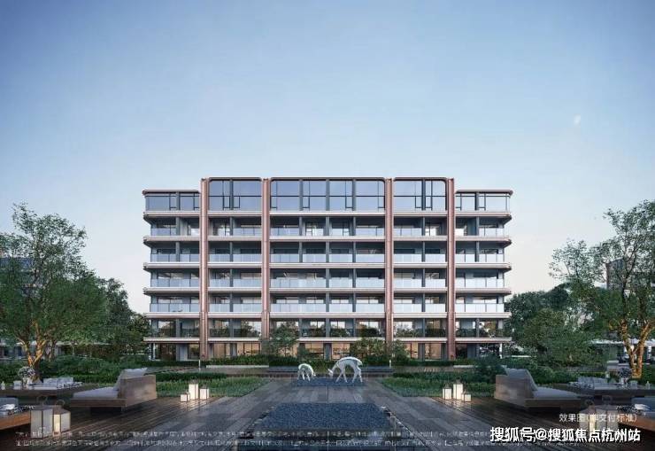 在选材上,项目采用米色石材、铝板和金属镶框进行多元混搭,重点刻画单元入口、入户大堂等细节,质感非常丰富。尤其艺术感的弧形镜面立面,与门前蜿蜒的水岸风光相呼应,让建筑仿佛拥有了呼吸感和浪漫的情绪。