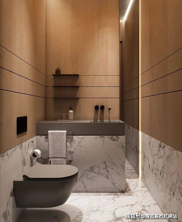 The bathroom expresses the cleanliness of the space through bright light, and the white marble sets off the cleanness and purity of the space, showing a sense of high quality.