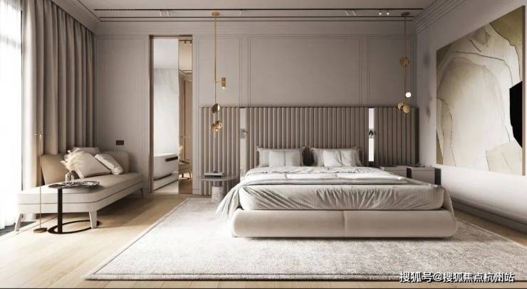 The design of the bedroom uses beige to increase the warmth of the space. On the one hand, it makes the space more livable. On the other hand, the furniture and space of the same color show a more advanced sense, making the space look more delicate. .