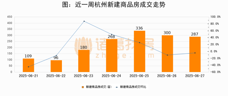 【杭州成交日报】06月27日新房成交287套、二手房208套;涨价房源18套