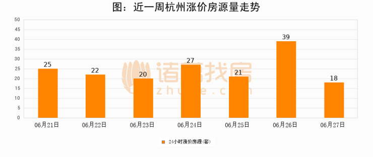 根据诸葛找房数据显示,杭州24小时涨价房源量为18套,较06月26日减少21套,环比下降53.8%。与此同时,涨价房源占比小幅回落,对于购房者来说是一个入市窗口期,购房者可抓住时机入市。
