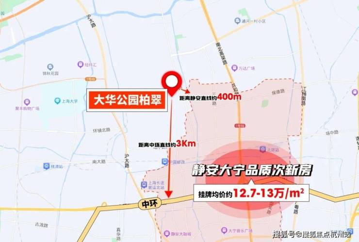 一个距离静安只有约400米、距离中环线直线约3km的,但是均价惊喜的项目:大华公园柏翠!