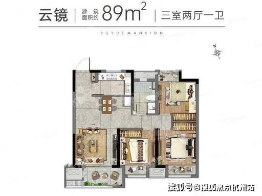 89㎡云境三房两厅一卫,作为项目主力刚需性价比户型,总价 285-325 万起,三开间朝南设计,客厅面宽约 3.6 米,衔接南向观景阳台,采光通风极佳;主卧套房设计,配备独立飘窗,保障居住私密性与舒适度;U 型厨房操作动线合理,实用性强;北向房间带飘窗,可作为儿童房、书房或储物间,功能性强;全明通透,干湿分离,适合三口之家或四口之家。