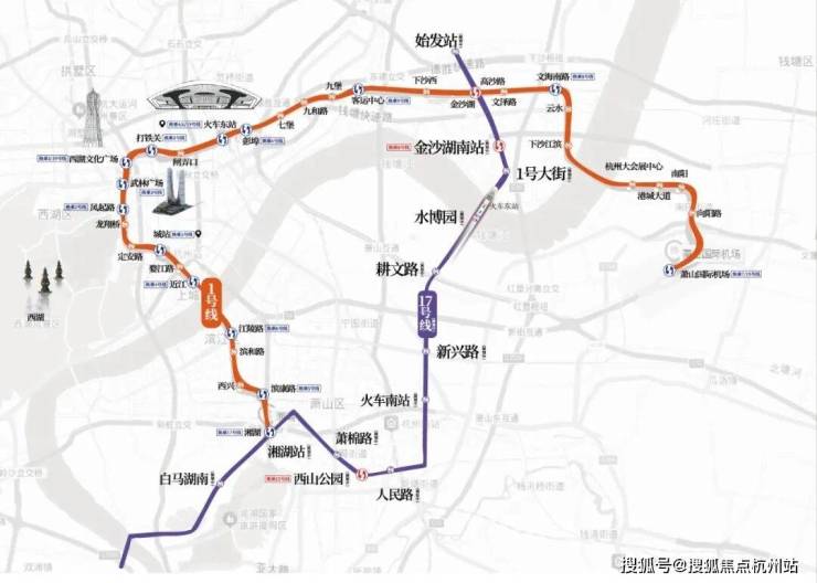 现有地铁:距 1 号线金沙湖站约 1.8 公里,8 站达杭州东站