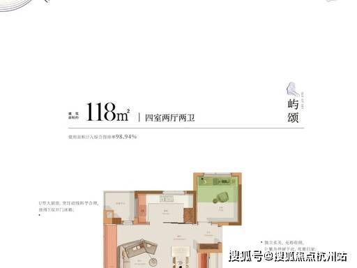 118㎡ 四房两厅两卫:高得房率明星户型,约 100% 得房率,空间感媲美 130㎡+
