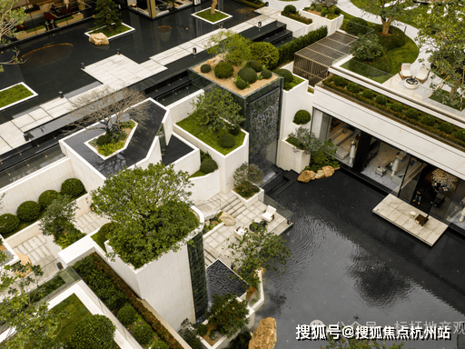 项目以 **“城市浮岛”** 为核心理念,打造杭州少见的高端社区形态: