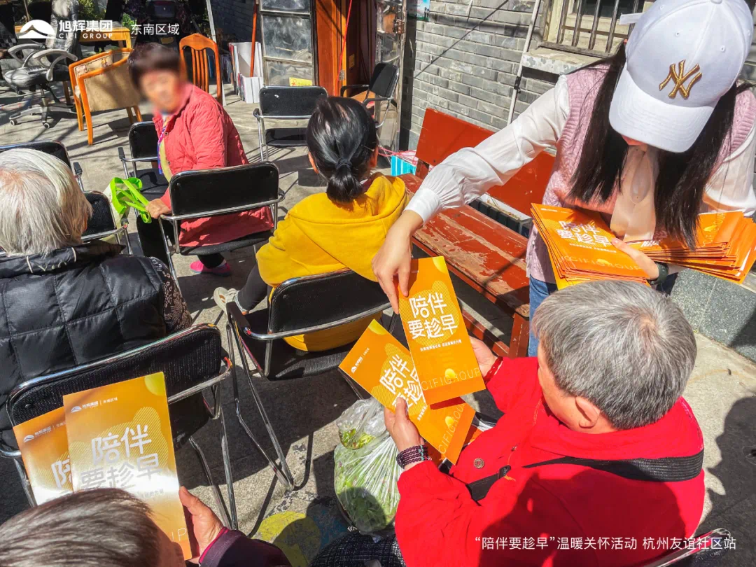 上周五,春风不燥、阳光正好。带着助老、敬老、爱老的出发点,“陪伴要趁早”东南旭辉进社区活动,准时来到了杭州西湖区友谊社区小广场,获得了爷爷奶奶们的一致好评。