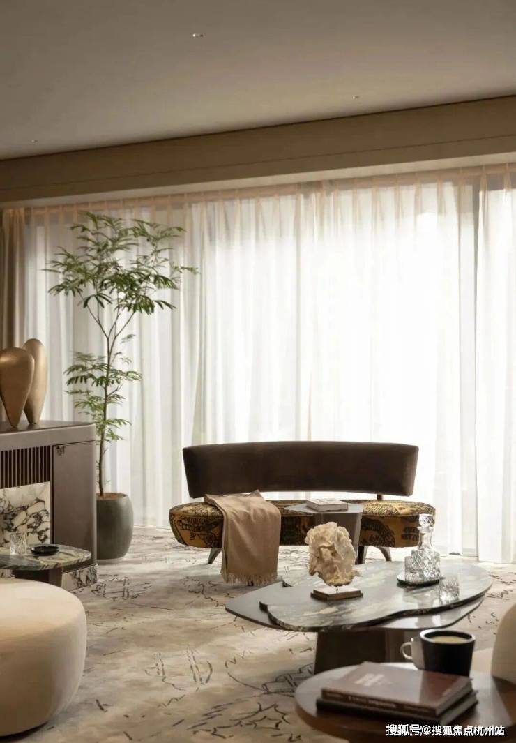 以黄浦江为灵感,营造“阅尽千帆后的宁静与松弛感“!通过8.5米南向宽厅、270°环幕玻璃、无冗余装饰的减法美学,让空间如江面般舒展,视野极度开阔!