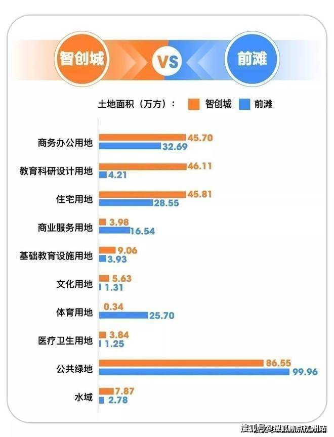 当然,很多人对这个体量不太有概念,我们以熟悉的前滩为标杆,来看一下智创城的整体配套体量,在上海占据怎样的位置: