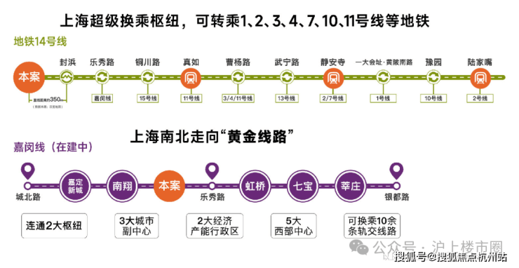 除了14号线,在建的嘉闵线也成为保利·虹桥和著的出行方式。经由嘉闵线(在建,预计2027年开通),3站直达虹桥枢纽,可换乘机场联络线,速达浦东三林滨江、张江、浦东机场。