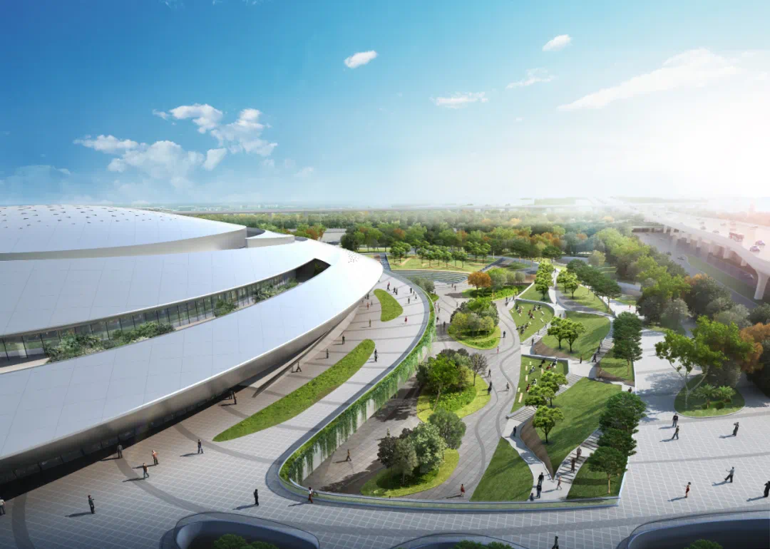 场馆以“星际涡漩”为设计理念,总建筑面积约8万平方米,拥有座位4087个。