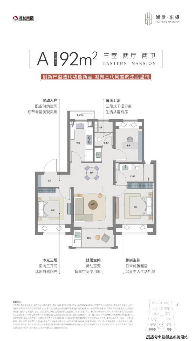 浦发上品推出建面约92-127㎡的3-4房,在所有户型设计上至少为三开间朝南,这对于任何家庭结构的购房者来说,都能享受到更好的采光、通风、视野。