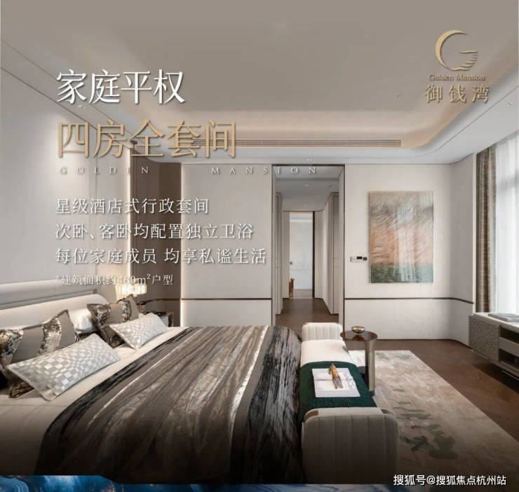层高4m净高3.4m的朗阔场域中,打造270°巨幕观江视野,超大LDK家庭社交中心,几近绝版的一梯一户,保姆梯直通家政间和厨房,餐客厅面积达到了109m²,远超普通大平层的70m²,4个套房+保姆间的设计,每个人都有自己的独立空间,互不打扰为未来居者盛载流动且美好的生活情境。