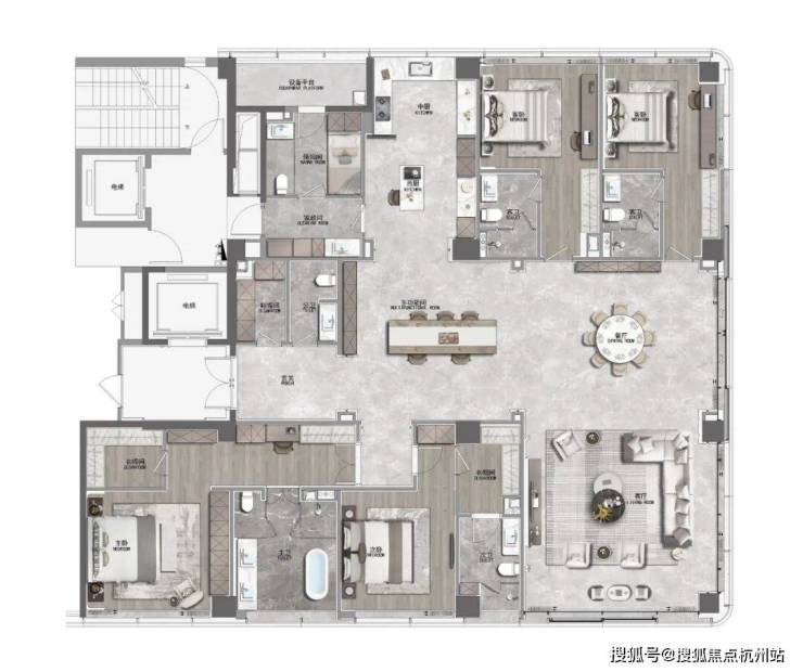 梁志天&上海世尊共同执笔:410㎡湾潮户型:WSD上海世尊团队执笔,以独一无二的“摩登东方”设计语言,抽象提取东方写意精神,与复古摩登、自由艺术平衡相融,领潮钱湾黄金时代。