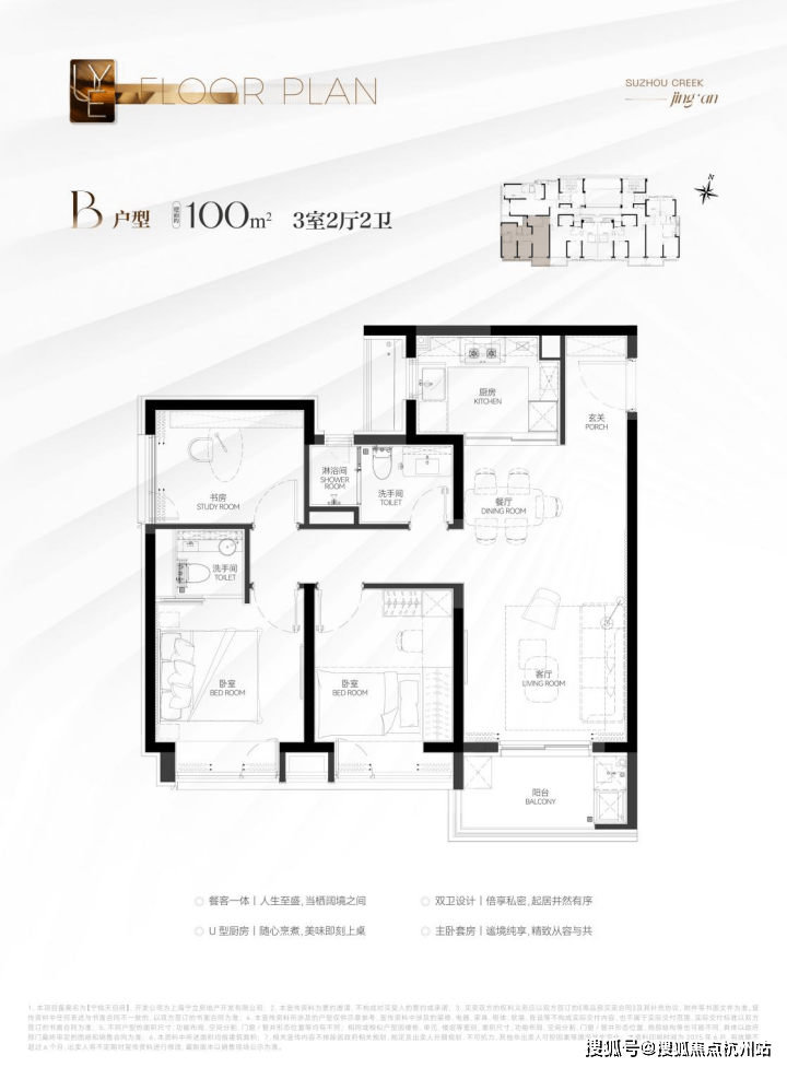 这个户型非常适合年轻小家庭上车!尺度上看,独立的玄关,仪式感与收纳功能兼具;餐客厅一体化+U字型厨房,布局合理;两房设计恰到好处。同时很好地控制了总价,千万级预算买进苏河湾核心位置的绝版机遇,地段控闭眼冲!