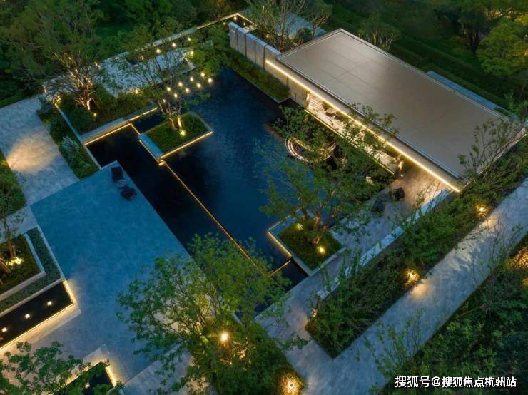 园林设计:借鉴苏州传统园林风格,环形曲廊串联景观轴线,300㎡中央戏水池和下沉式会所