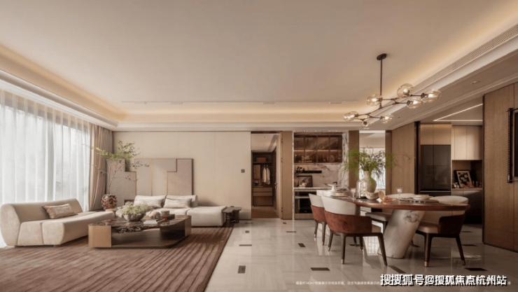比起当下市面上跟风的“网红设计”,壹江臻邸显然更懂高端客群对“长久美感”的追求——建筑立面摒弃昙花一现的潮流元素,而是选用石材、铝板与超大玻璃的经典组合,不仅质感厚重,还能抵抗岁月侵蚀;全球新经典主义审美,在传统与现代技法的有机融合下,得到完美呈现;