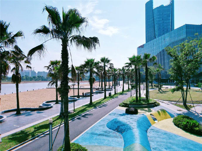 绝美的沙滩、成片的棕榈树……这难道是某个海岛一角?不,这个地方其实就在杭州,地铁1号线直达大家猜到了吗?就在钱塘区的金沙湖公园简直就是杭州的“小三亚”在杭州,也可以感受碧玉金沙
