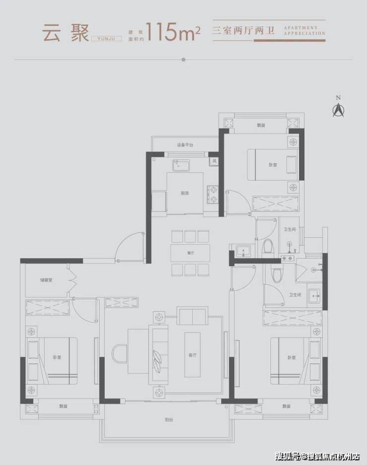 雅致三房: 满足三口之家所需,北向房间可改造书房,理想生活一步到位