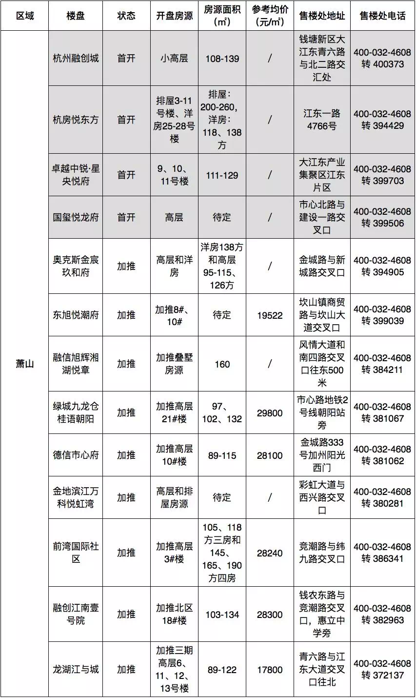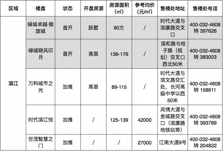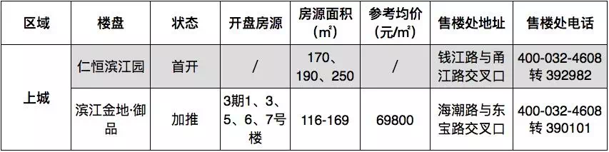 滨江10月即将上线5盘,其中3盘首开,2盘加推。