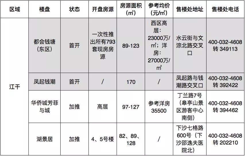 江干10月上线4盘,其中2个纯新盘。