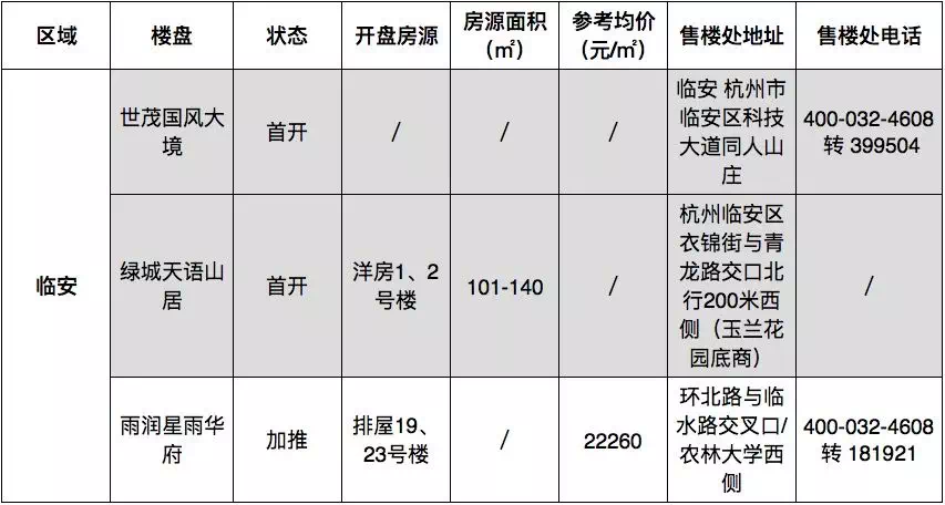 余杭预计15盘入场,其中10盘即将首开。