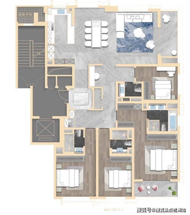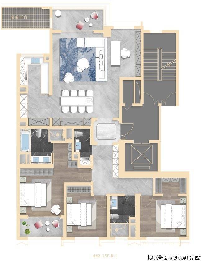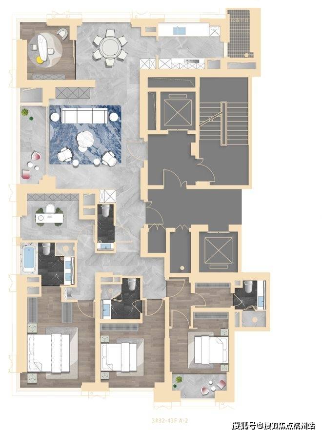 5开间朝南,4卧朝南,双卧套房设计,南向超大采光面,让阳光和清风肆意流淌;