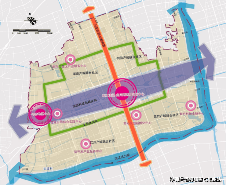 同时,上海2035规划,上海南部科创中心将以15号线和浦西科创中轴带为聚焦,北与虹桥同频,南与紫竹高新区联动,串联漕河泾开发区与徐汇,上海南部科创中心。未来,以元江路商务区为中心,将北接大虹桥国际商贸带,南连“大零号湾”,东连吴泾“滨江战略留白区”、西接马桥人工智能区的生活秀带,成为千亿级上海南部增长极。