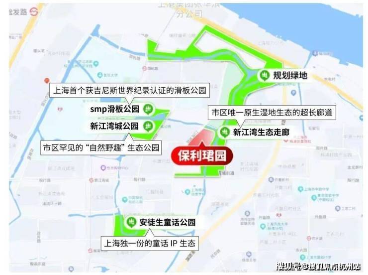 除此之外,项目周边环绕着 新江湾城生态走廊、安徒生童话乐园、新江湾城公园、SMP滑板公园四大城市公园,约21公里绿道与约18公里河道交织成网,形成庞大的生态景观集群