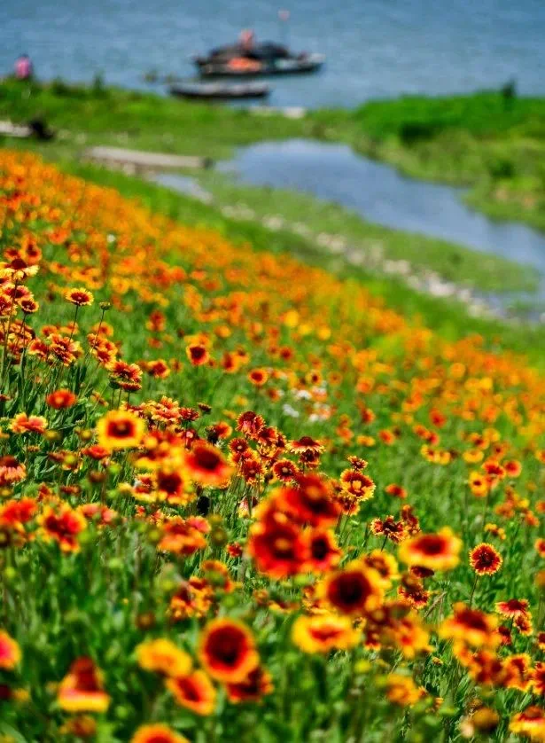 径山花海占地近1000亩,花海错落有致,依山傍水。