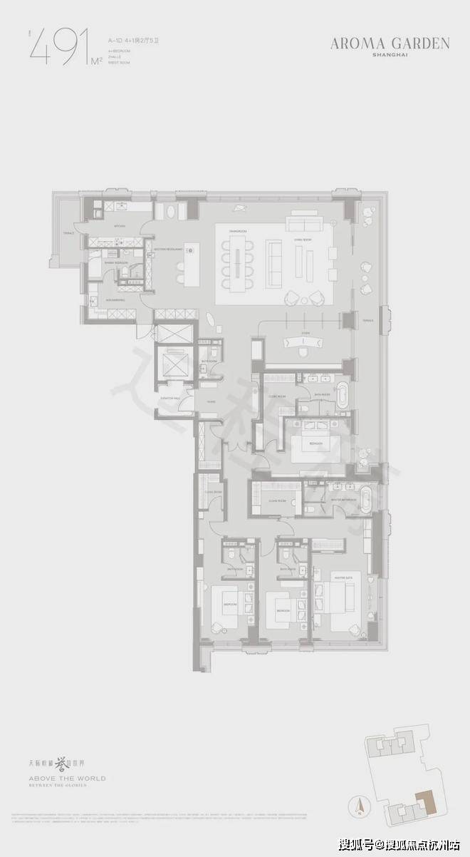 其中,A地块共计150套天际大平层,面积为建面约264-901㎡,主力户型为4房-5房。