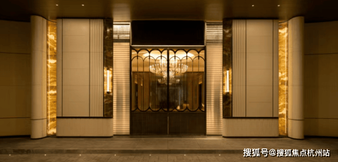 门庭延街外立面,以精工定制弧形米色石材为主调!镶嵌典藏级老虎玉大理石,点缀古铜色现代海派艺术感灯器,整体呈现出百年海派贵雅气质!