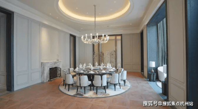 同时精奢细节嵌入,不仅室内高颜值,更保障了业主后期绝佳使用体验!管中窥豹:比如,定制铸铝门、专属奢石把手,进门后玄关地面设计了专属石材拼花,并定制通体玄关柜!