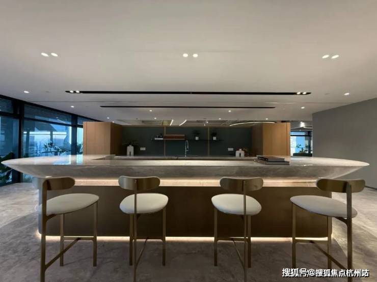 EIC在标准层高约4.5米、局部挑高约9米的大开间格局里,精心规划品牌区、访谈区、会议区、生活娱乐区、互动社交区、科技创新区。项目注重ESG理念,采用石材、陶土、木饰等可回收材料,创新2.4米宽杭州罕见玻璃幕墙,还提前构建了万兆光纤、燃气管道以及有淋浴、洗漱功能的VIP卫生间,员工在工作中生活,在生活中工作,让工作充满社交与互动,高效且怡人。