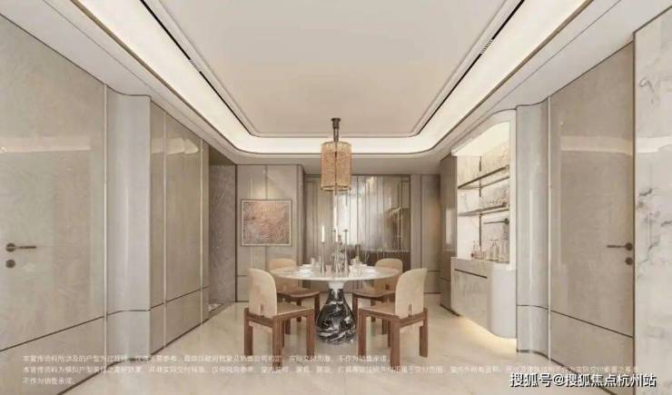 其次,在“飞机户型”带来的无过道优势中,一个最直观的体现便是 “宽绰餐厅”的实现:它不仅容纳常规长桌,更能轻松置入一张 小圆桌。