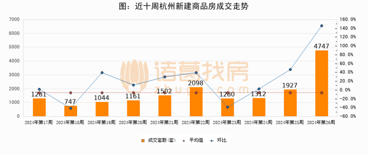 【杭州成交周报】第26周新房成交4747套,二手房1859套,涨价房源595套