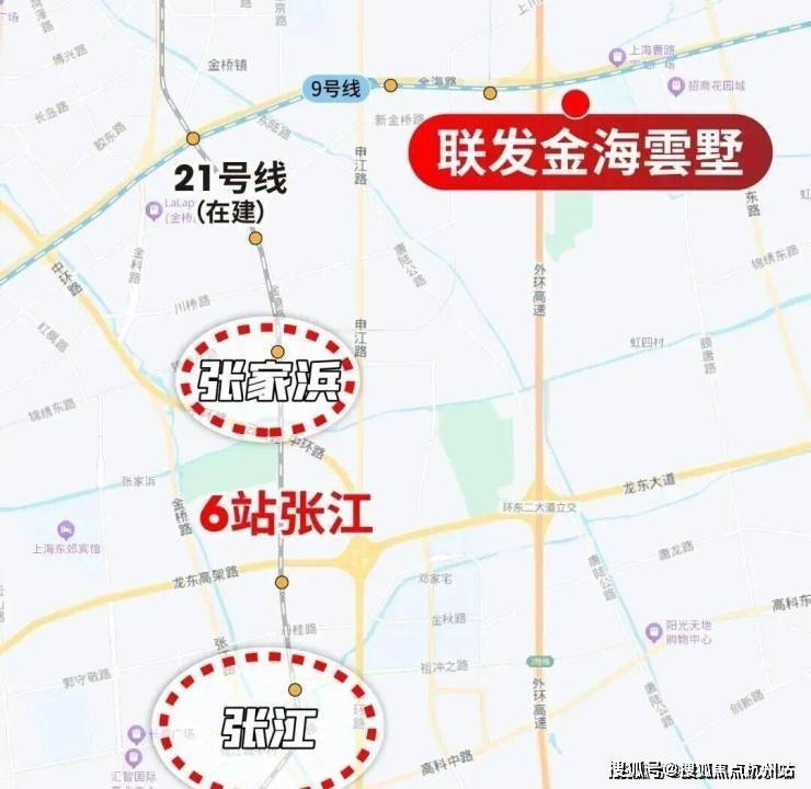 未来21号线开通后,从距离项目最近的金海路出发,4站张家浜、6站张江。