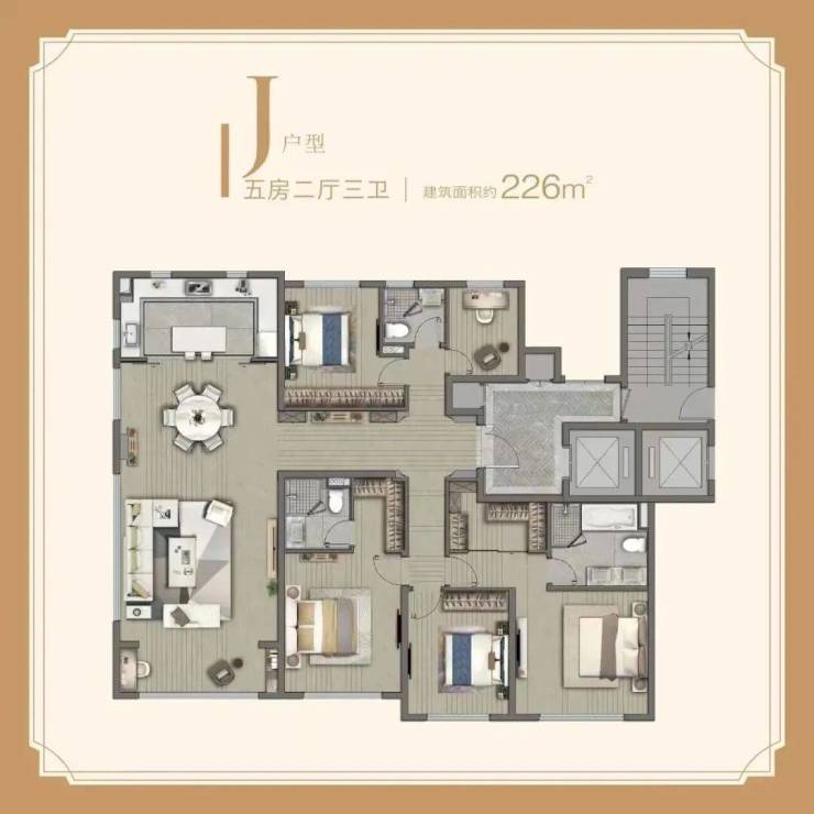 户型多样 :主推建面约83-226㎡二至五房,类一梯一户设计,提升私密性和居住舒适度。