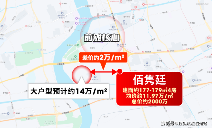 哪怕对比西侧待售新房,优势也很清晰:那边大户型预计均价约14万/㎡,佰隽廷又拉出了约2万/㎡价差。
