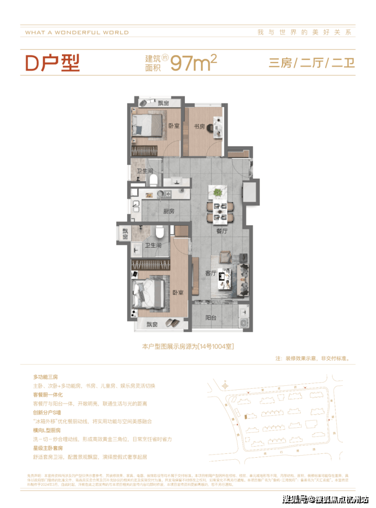 1、本资料为要约邀请,不作为要约或承诺;买卖双方的权利义务以双方签订的《商品房买卖合同》及其补充协议、附件等书面文件为准;相关宣传内容不排除因政府相关规划、规定及出卖人分期规划、未能控制等原因发生变化;出卖人将!不定期对宣传材料进行修改,敬请留意最新资料。