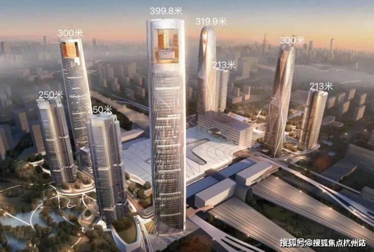 望云润玺院所在的云城核心,历经五年建设,西站已经运营,约320米杭州第二高楼“金手指”等皆已突破250米大关,CD塔楼已封顶。