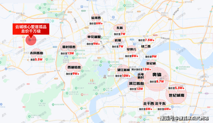 蒋村低密地块,楼面价8.8万+,放风单价13万以上,一套总价要6000万起;湖墅民生药厂地块,叠墅预计售价13万+,总价3600万-8000万;和家园玺园均价9.06万/平,总价1700万-3000万以上……