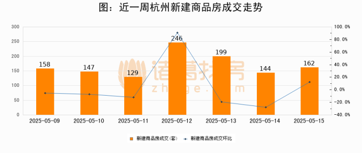 【杭州成交日报】05月15日新房成交162套、二手房224套;涨价房源28套