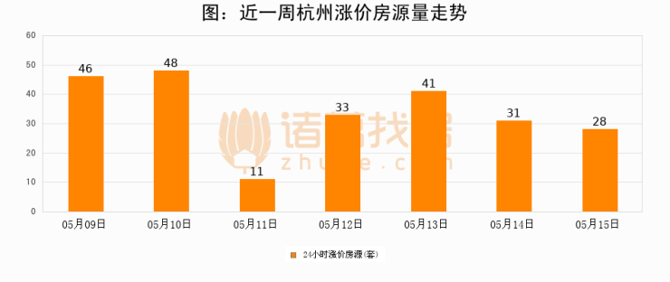 根据诸葛找房数据显示,杭州24小时涨价房源量为28套,较05月14日减少3套,环比下降9.7%。与此同时,涨价房源占比小幅回落,对于购房者来说是一个入市窗口期,购房者可抓住时机入市。