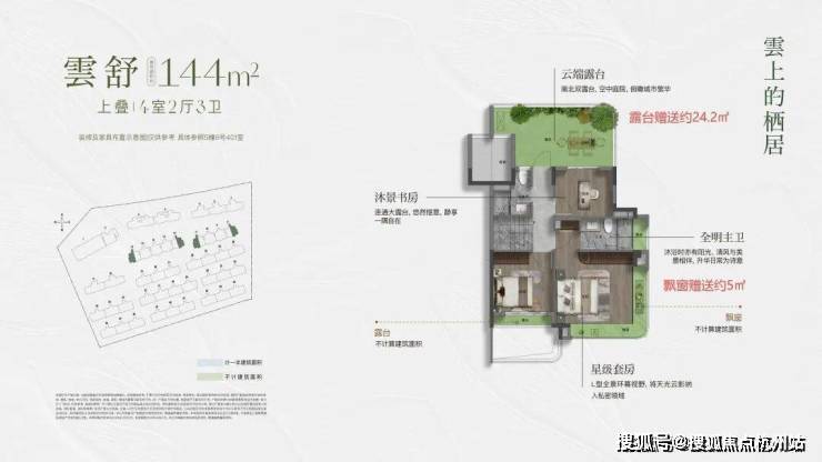 约144㎡上叠,入户独立梯厅,带来更好的功能利用和私密性.